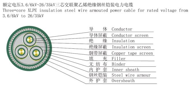 額定電壓3.6/6kV~26/35kV交聯(lián)聚乙烯絕緣電力電纜